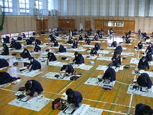 3年生以上の校内書き初め大会を体育館で行いました。