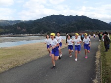 球磨川河川敷で、約2㎞の道のりを一生懸命に走りました。