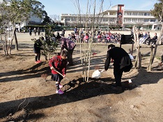 温知の森と正門の花壇の整備が終わり、本日完成式典が行われました。