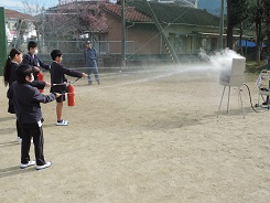 また、子どもたちは、消化器の使い方を学び、実際にやってみました。