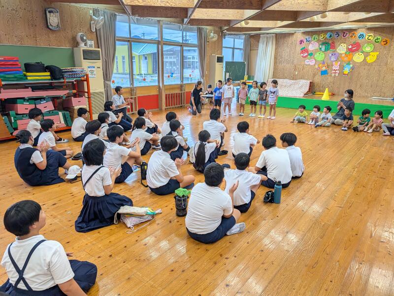 9月4日、6年生は総合的な学習の時間に地域の保育園と交流しました。園児たちと楽しく交流することができました。この交流で学んだことを活かし、6年生はこれからどんな遊びをしたら園児が喜んでくれるのか考えていきます。