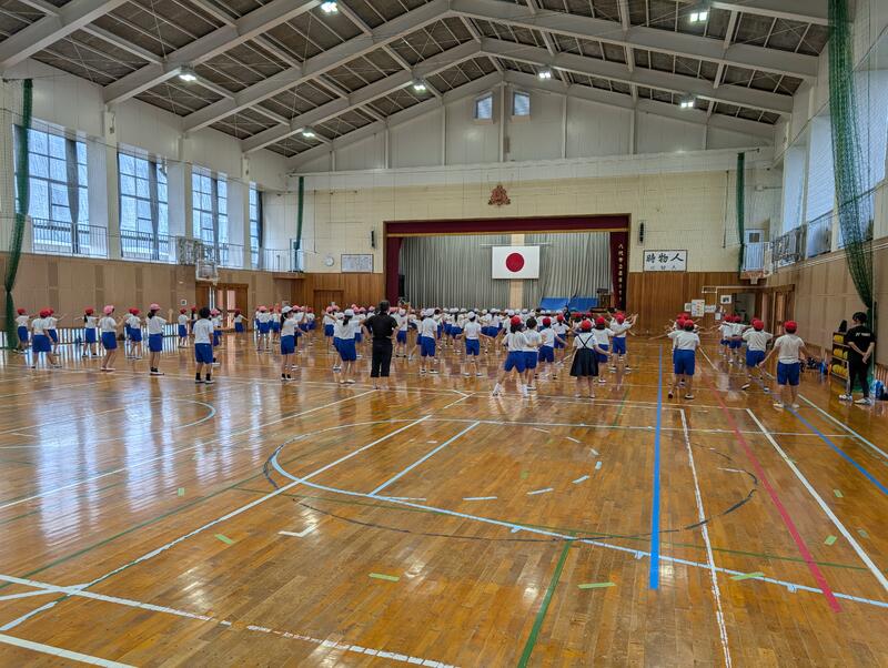 9月25日、運動会に向けて全体練習が行われました。流れや、ラジオ体操、礼の仕方、歌の練習を頑張りました。