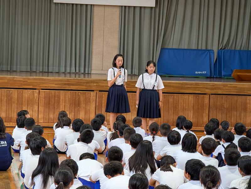 10月15日、朝の全校集会で運動会解団式を行いました。応援団がそれぞれの思いを語ってくれました。この学びをこれからの学校生活に活かしてほしいです。