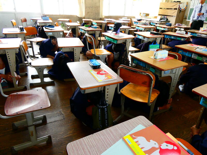 次に、シェイクアウト訓練をしました。