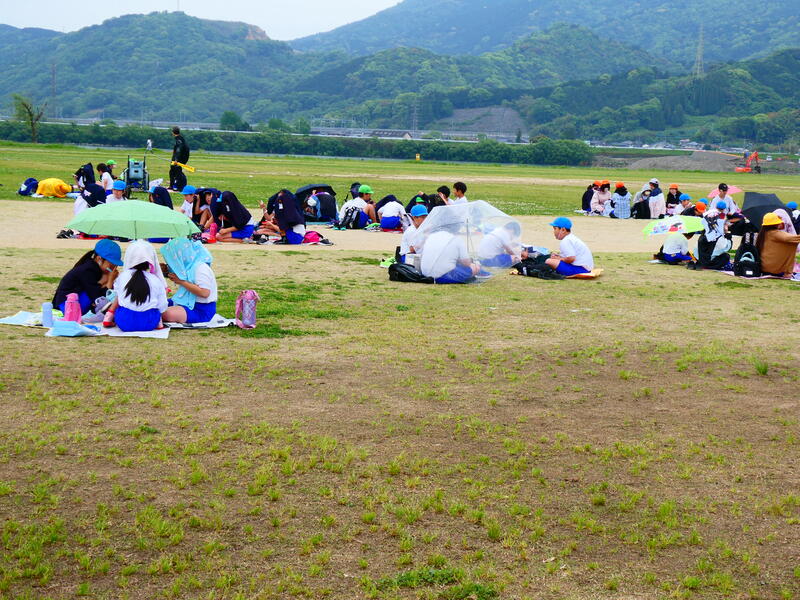 小雨の降る中、お弁当を食べました。