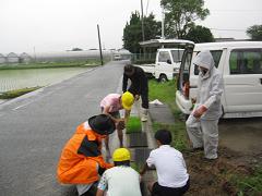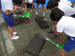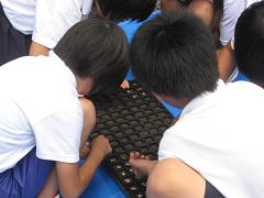 みんなで協力して土を入れ、水をかけて、種をまいていきました。