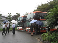 校長先生からの話を聞き、運転手さんやガイドさんにあいさつしました。