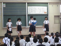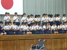 5時間目は授業参観でしたので、この集会から保護者の方にも見ていただきました。