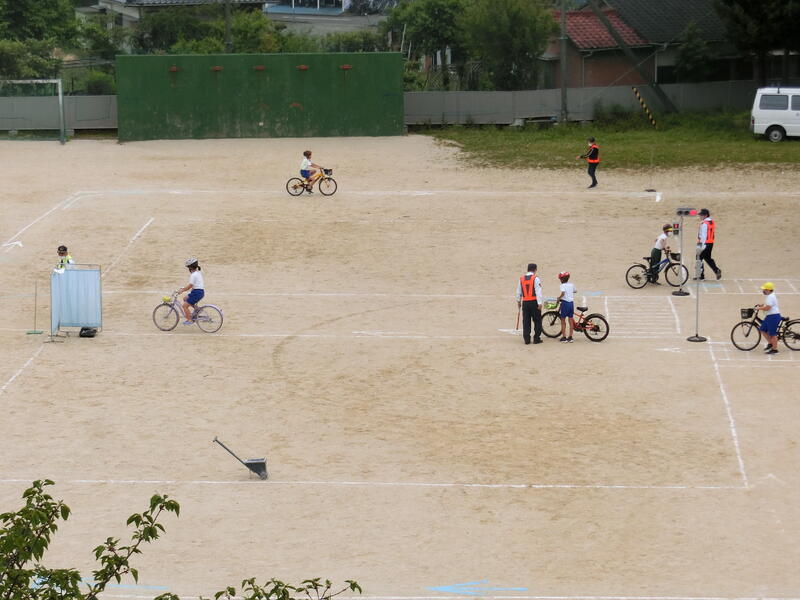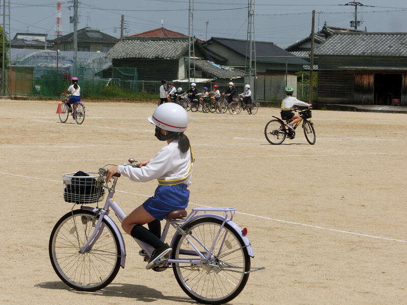 自転車の乗り方を一人一人実際に乗って学習しました。
