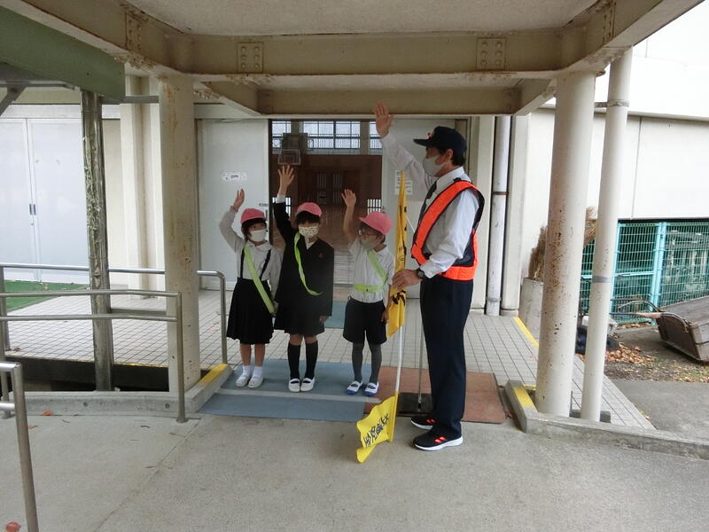 低学年は横断の仕方などを体育館や校舎内で学びました。