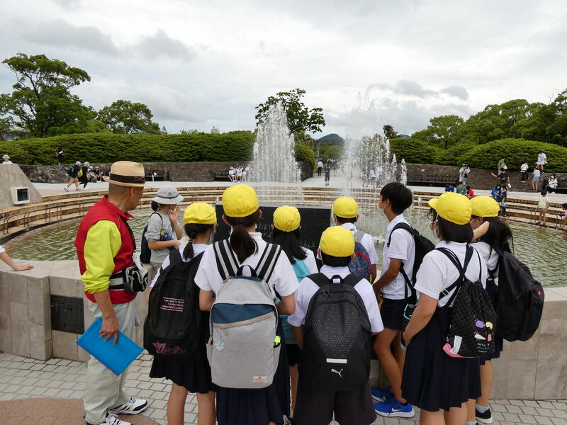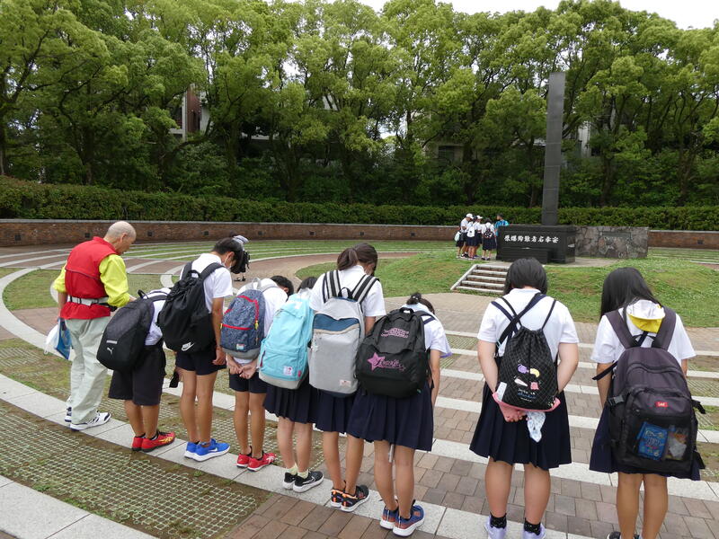 平和記念公園で平和集会をして、フィールドワークをする。