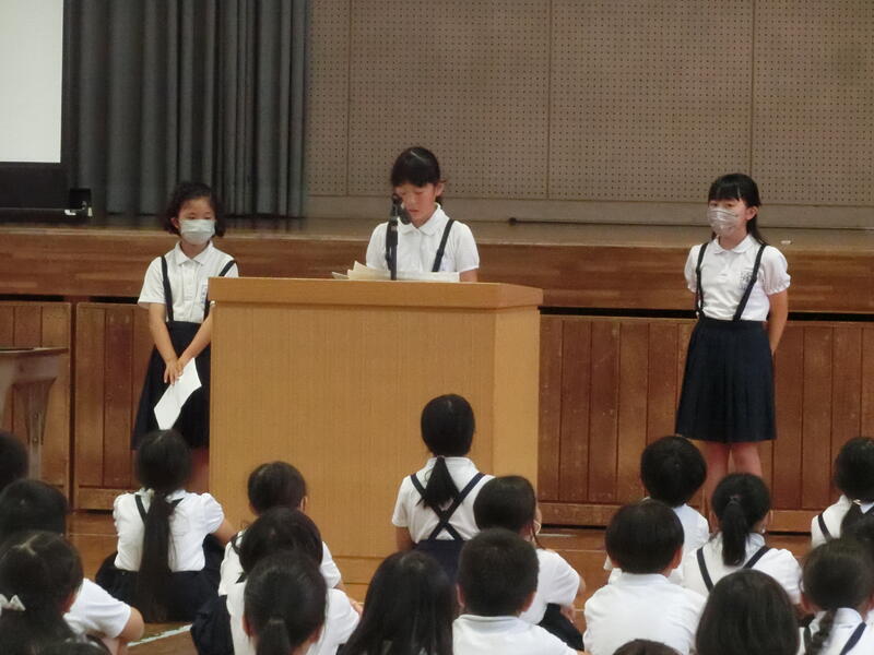 児童代表3名が、1学期の反省を発表しました。