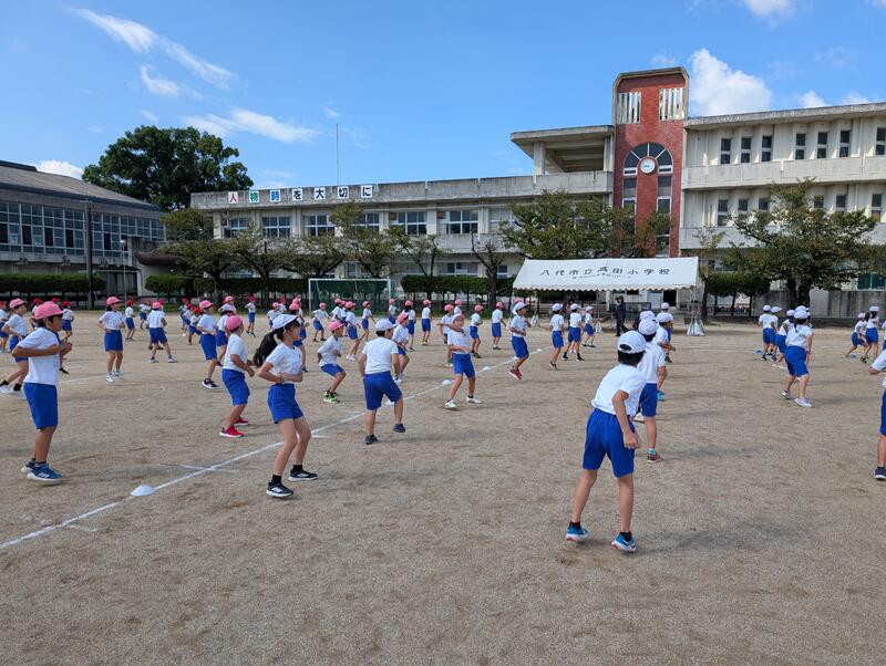 10月2日 中学年は運動会の表現練習を行いまさした。運動場で場所確認をしました。