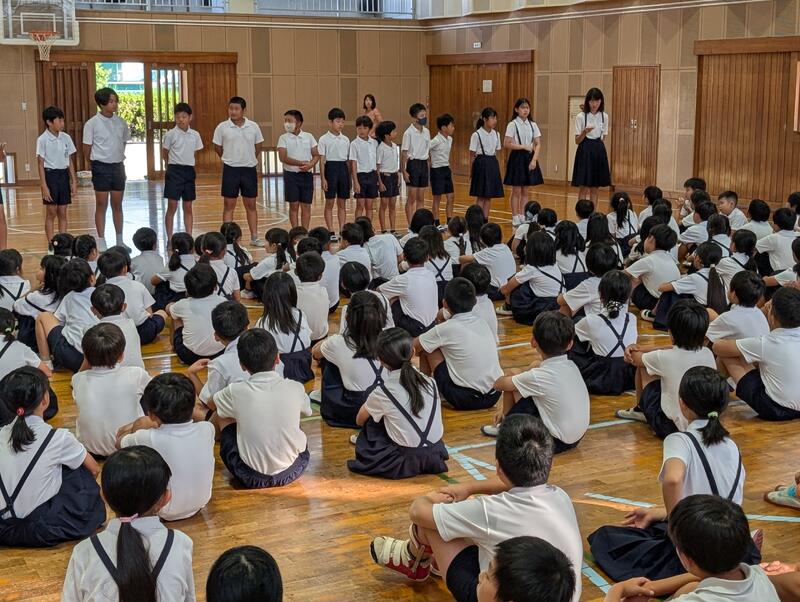 10月15日、朝の全校集会で運動会解団式を行いました。応援団がそれぞれの思いを語ってくれました。この学びをこれからの学校生活に活かしてほしいです。