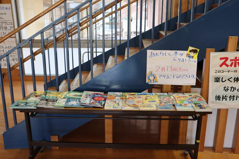 (1枚目)新しい図書です。町予算・PTA予算等から中島司書が選書してます。