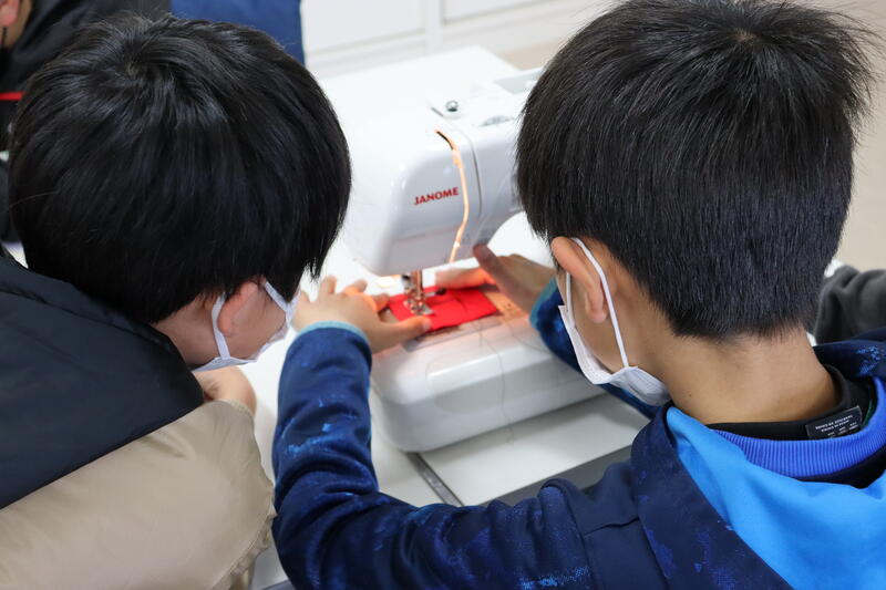 (3枚目)5年生がミシンと格闘中です。覚えるととても便利です。