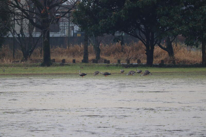 (1枚目)運動場を散歩するカモたち。のどかです。