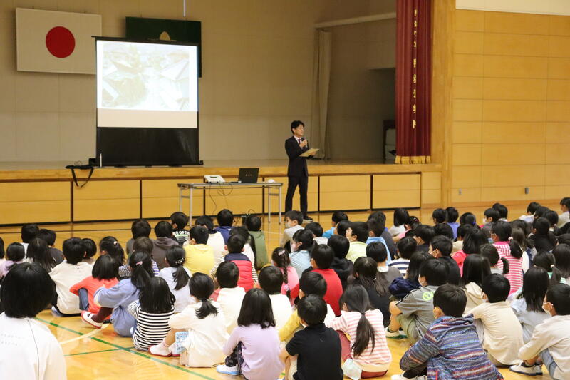 【3枚目】11月24日(木)「夢きらり集会」を開催しました。この集会は地域や子供たちのために活動していただいている方を招いて、ふるさと甲佐町のよさや貢献することの大切さを学んで欲しいと行っています。今回は、PTA会長にみんなの安全を守っている「消防団の活動」について話していただきました。