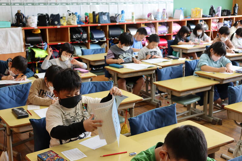 (2枚目)昨日・今日は町の学力検査でした。初めての1年生も一生懸命取り組みました。