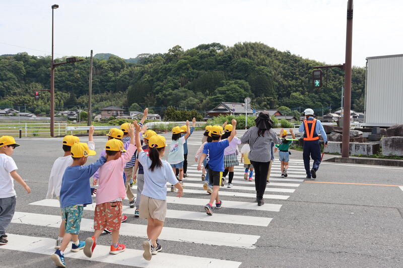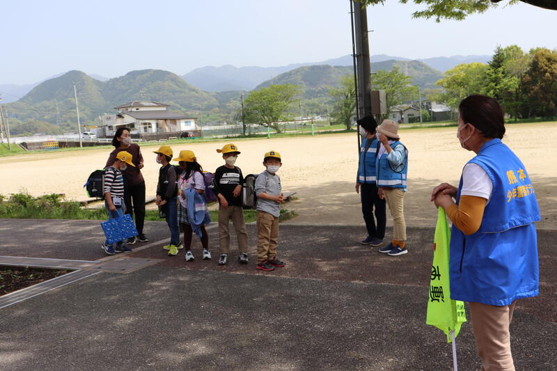 あいさつの声が大きかった子供達です。地域の方々から見守られ、幸せな甲佐っ子です。