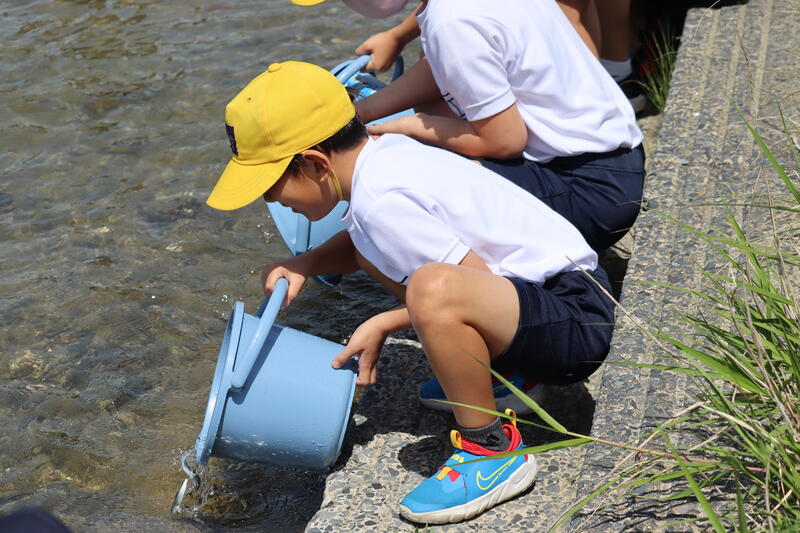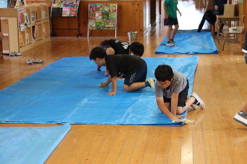 今日は、3年生が洗濯体験です。地域の方9名に来ていただき、洗濯板を使ってぞうきんを洗濯しました。