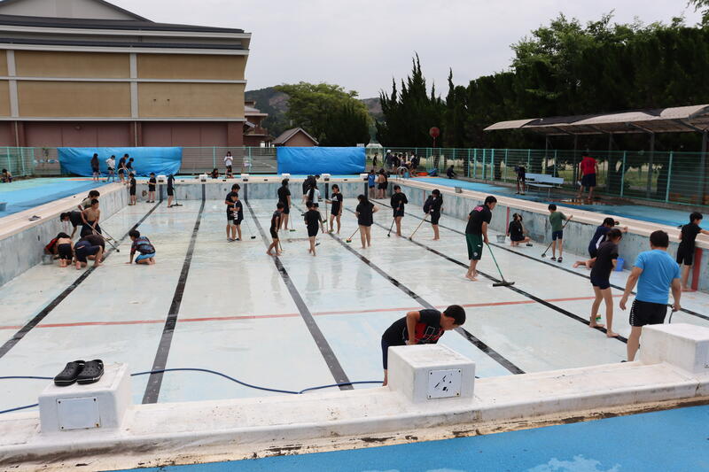 今日は開会式の演習でした。体育主任から基本的な動きや姿勢の指導・指示がありました。