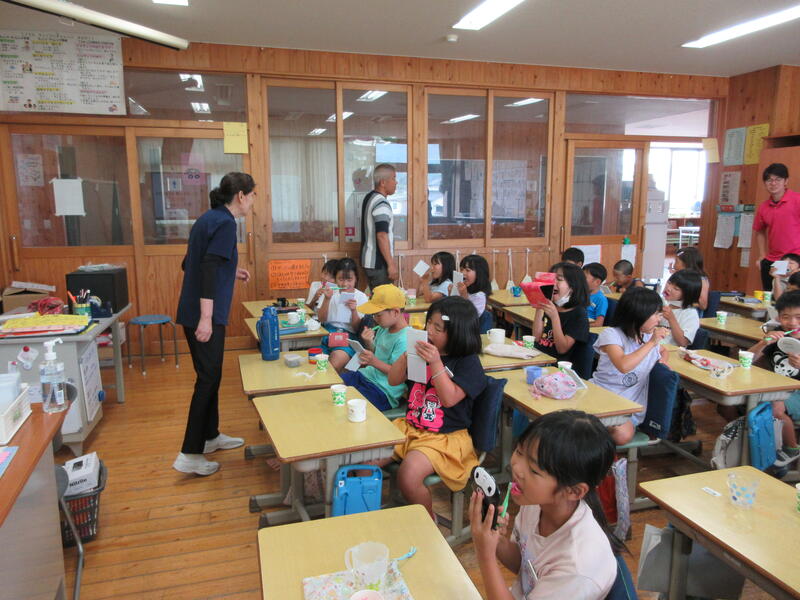 (2枚目)3年生の外国語。単語を覚え、発音も良くなっています。