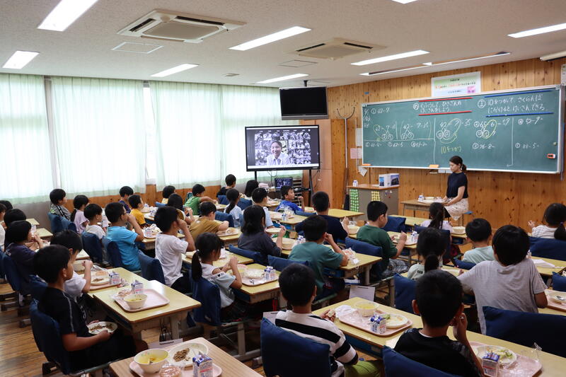 永岡栄養教諭からは給食センターの紹介や食への感謝等の話がありました。