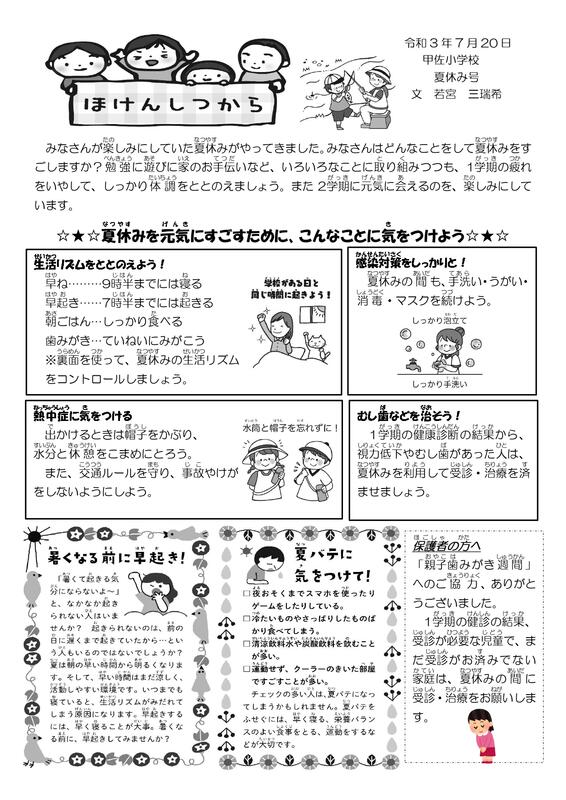夏休みに入りました。子ども達はどうお過ごしでしょうか。楽しい夏休みを満喫しつつも、生活リズムを整えて、2学期に備えてほしいと思っています。
