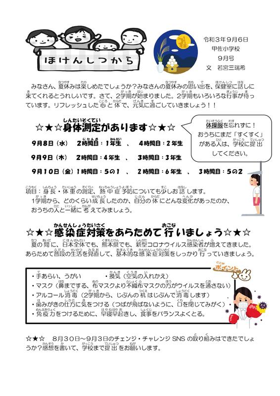 2学期が始まりました。校舎には子ども達の楽しそうな声が戻ってきました。