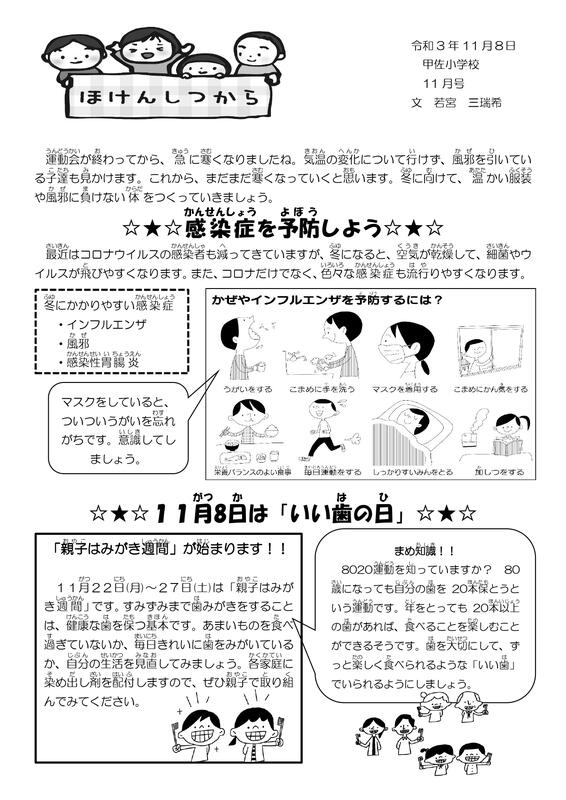 10月10日が「目の愛護デー」ということで、今月は「メディアコントロールをして目を大切にしよう」という内容となっています。一生使う目ですから、ぜひ自分たちで意識して大切にしていってもらいたいです。