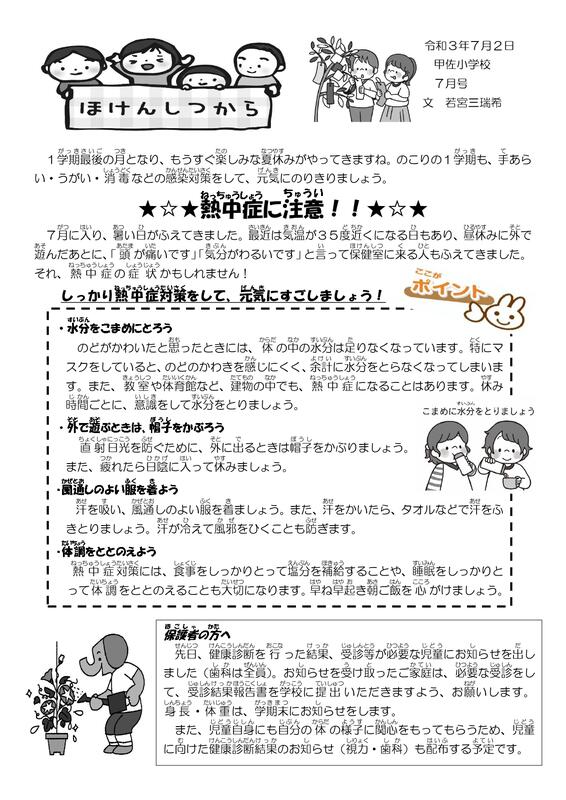 夏休みに入りました。子ども達はどうお過ごしでしょうか。楽しい夏休みを満喫しつつも、生活リズムを整えて、2学期に備えてほしいと思っています。