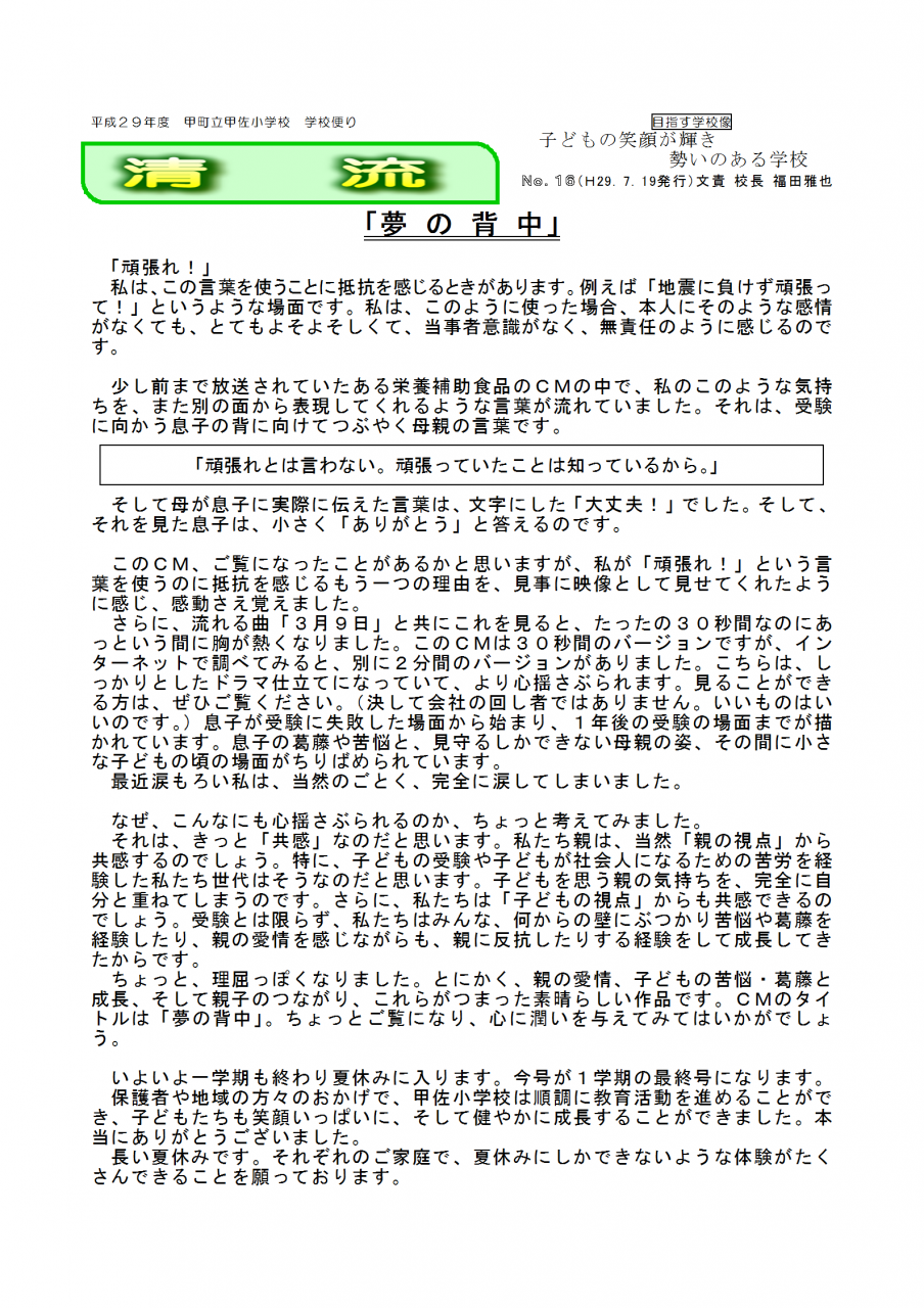 学校便り「★清流★」