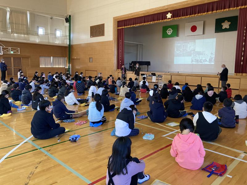 本日は、水俣病語り部講話ということで、町内小学5年生が甲佐小体育館に集まり、語り部さんからご講話をいただきました。