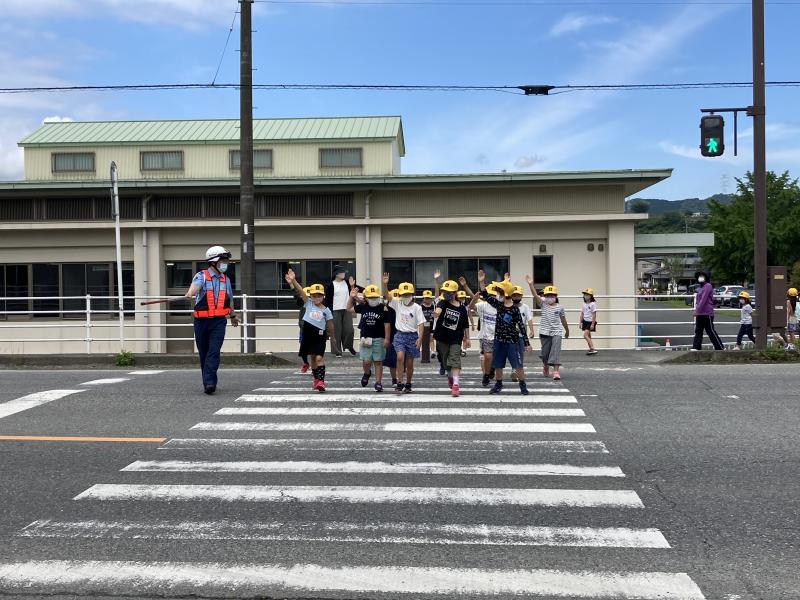 甲佐っ子は、登下校時、横断歩道で止まっていただいた車に対して、帽子を取って一礼をします。