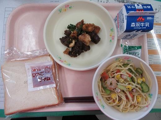 食パン 牛乳 冷たいスパゲティ 鶏肉とカシュナッツの炒め物 いちごジャム