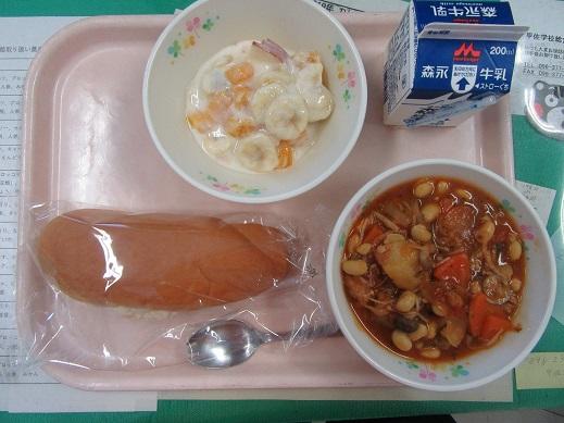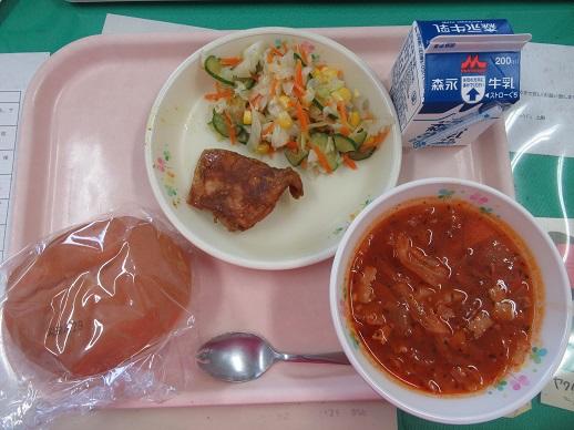 丸パン 牛乳 ミネストローネ タンドリーチキン コーンサラダ