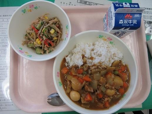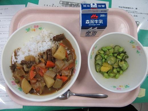 ビーフカレーライス 牛乳 枝豆と甘夏のサラダ