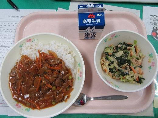 ハヤシライス 牛乳 わかめとツナのごまサラダ