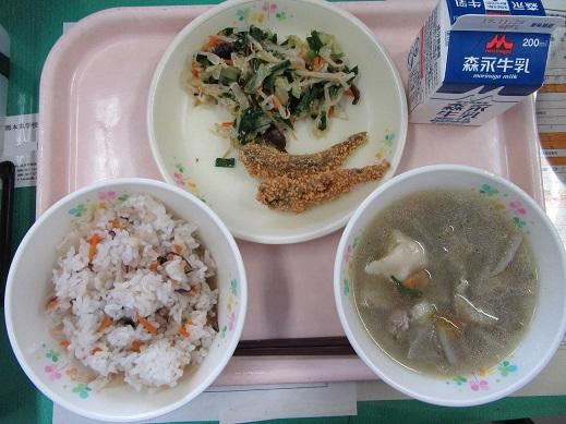 たこ飯 牛乳 団子汁 いわしのフライ にらサラダ