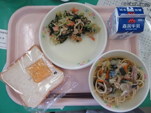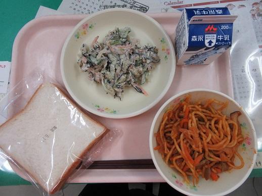 食パン 牛乳 スパゲティナポリタン ひじきサラダ