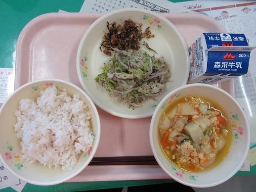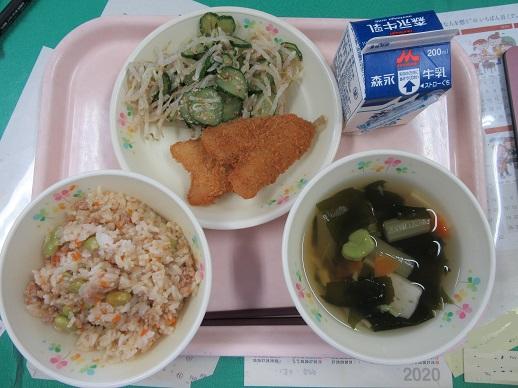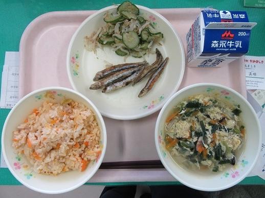 わかめごはん 牛乳 じゃがいものそぼろあんかけ 野菜のおかか和え