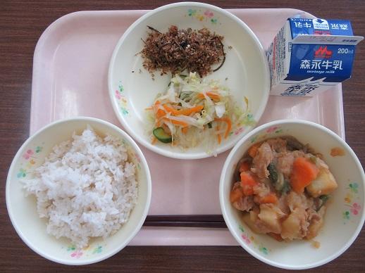 わかめごはん 牛乳 肉じゃが 人参サラダ