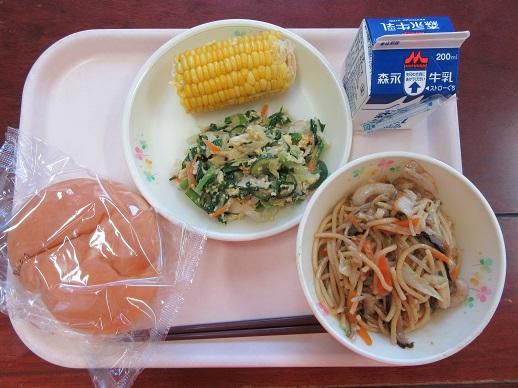 丸パン 牛乳 焼きそば にらサラダ スィートコーン