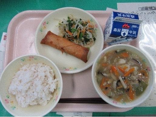 麦ごはん 牛乳 春巻き 八宝菜 ナムル