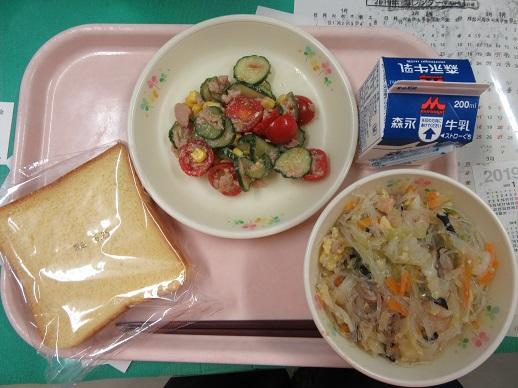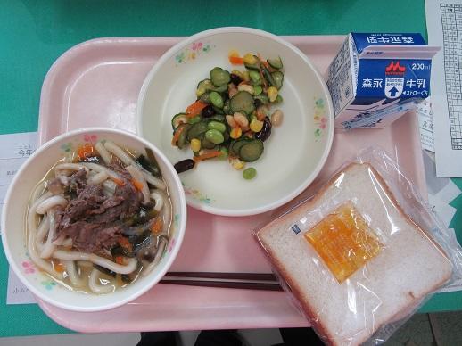 食パン 牛乳 肉うどん まめまめサラダ みかんジャム