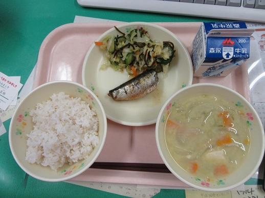 丸パン 牛乳 じゃがいものポタージュ いわしのフライ 切り干し大根サラダ