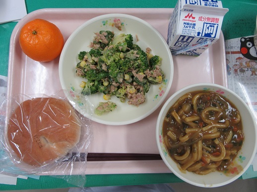 米粉パン カレーうどん ツナとブロッコリーのサラダ ぽんかん