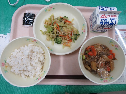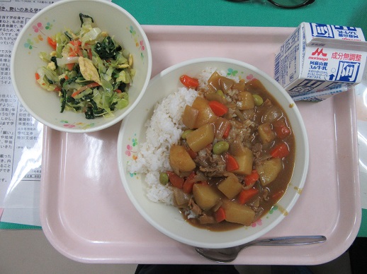 冬野菜カレーライス 牛乳 まめまめサラダ