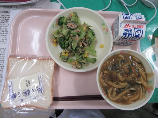 食パン 牛乳 カレーうどん ツナとブロッコリーサラダ ソフトチーズ